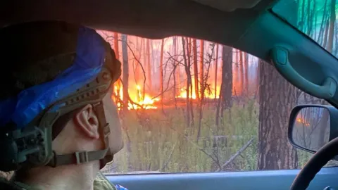 Національна гвардія України також показала кадри бойових дій у Серебрянському лісі: бойова машина піхоти батальйону "Хорив" бригади "Буревій" маневрує серед дерев, щоб зайняти позицію.