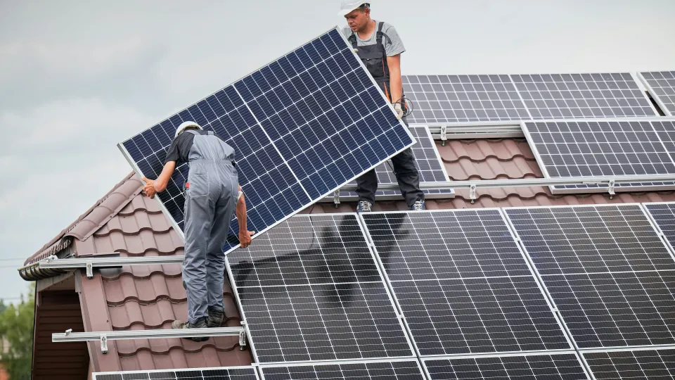 Встановлення . Монтаж сонячних панелей зазвичай провадиться на дахах, фасадах будівель або спеціальних конструкціях.
