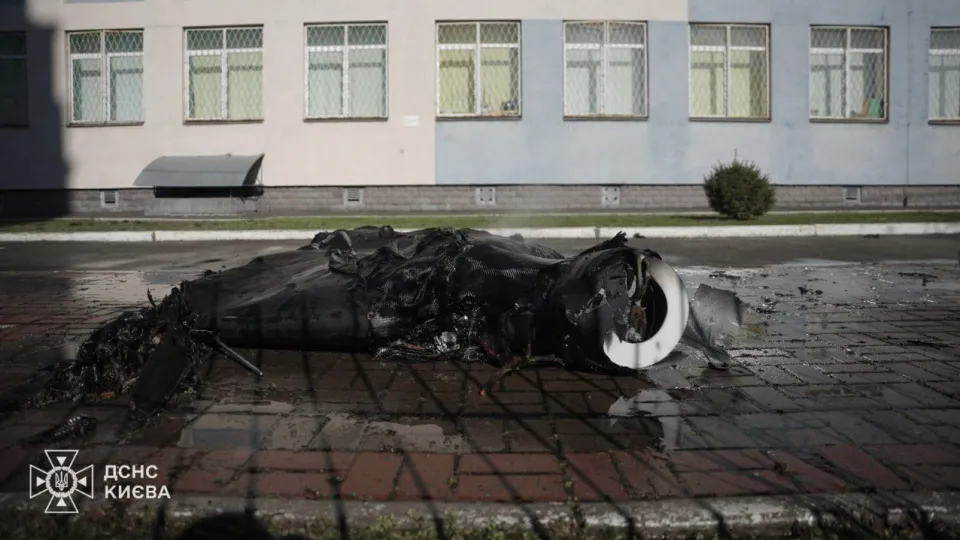 Уламки БПЛА впали на території школи, у місті зафіксували пожежу. У КМВА запевнили, що учні школи під час тривоги перебували в укритті.