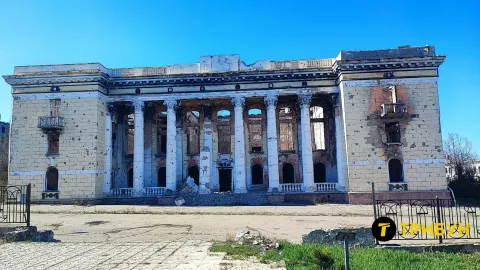 Далі — розтрощена будівля технікуму та “Будинок техніки”.