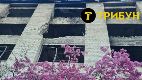 У мережі показали нові фото із Сіверськодонецька, зроблені в квітні 2025 року. Весняна краса, а позаду — зруйнована будівля НВО "Імпульс":