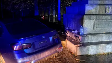 Водій BMW не вибрав безпечної швидкості руху та здійснив наїзд на стелу пам’ятника. Внаслідок ДТП травми отримали четверо пасажирів автомобіля віком від 24 до 27 років.