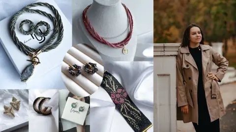 Вона вирішила спробувати. Перші прикраси з бісеру побачила в інстаграмі у дівчини з України — сподобалося настільки, що захотілося повторити. Почала шукати уроки на YouTube — майстер-класи, покрокові інструкції, техніки плетіння. Вчилася сама, дивилася відео, пробувала, помилялася, переробляла. Ніхто не навчав — усе своїми руками, методом спроб і помилок, поки не почало виходити. Для таких прикрас використовується ювелірний бісер — набагато якісніший, стійкіший за звичайний. Є навіть бісер із золота — він коштує близько 500 гривень за грам.