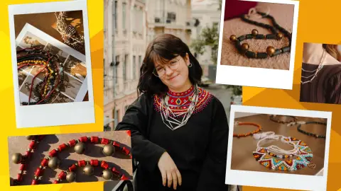 Крістіна плете традиційні українські прикраси: лускавки, шелести, намиста — з бісеру, скла, кераміки. Побачити їх можна на її сторінці в соцмережах.