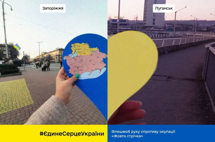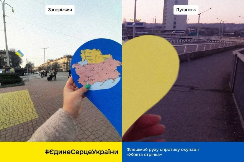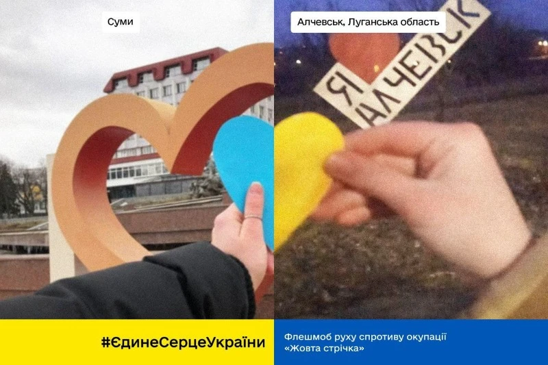 Жителі тимчасово окупованої Луганщини долучаються до акції "Єдине Серце України" від руху громадського спротиву окупації "Жовта Стрічка" .